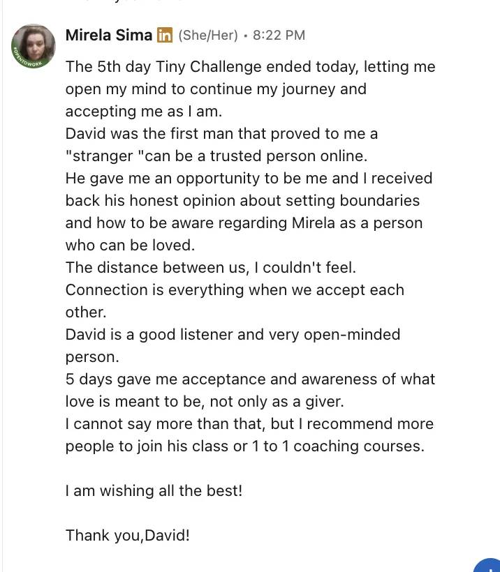 You can expect a supportive and confidential environment where you can openly discuss your aspirations and challenges. Each session is a collaborative effort, focusing on actionable steps to achieve your personal goals.